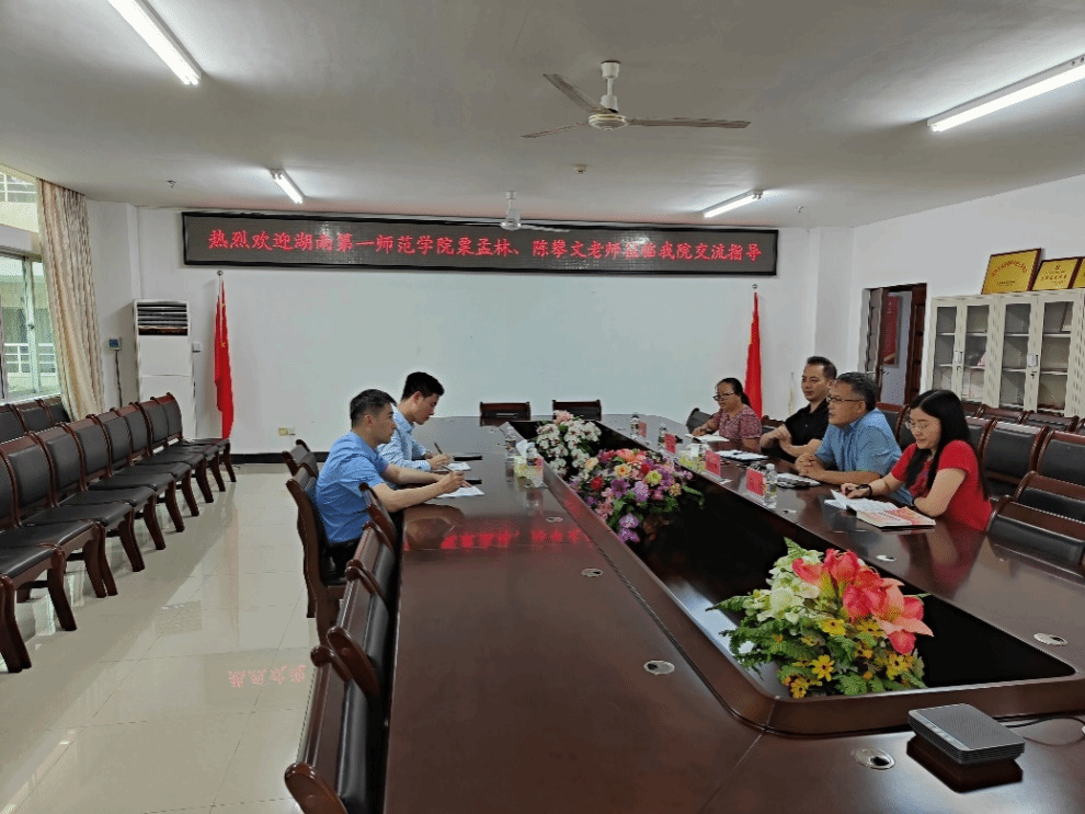 4月11日上午,湖南第一师范学院马克思主义学院国家社科基金重点项目(项目名称为:调查研究在习近平新时代中国特色社会主义思想实践课中的运用)课题组粟孟林、陈攀文一行来我院调研交流。永利集团88304官网蔡文举副院长、王一闳副院长、习近平新时代中国特色社会主义思想概论教研室主任刘涵、骨干教师方英群参加交流。