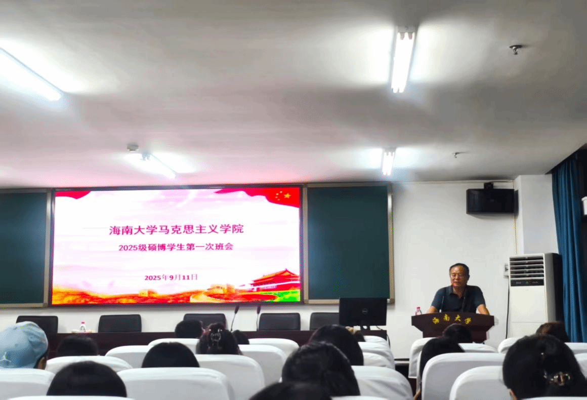 开学第一课之后,还举行了2025级硕博士班干部选举活动,班主任赵浩老师与同学们交流了班级共同体建设和未来学业规划等内容,一起学习了海大科研诚信的相关文件。衷心希望2025级硕博士全体同学迅速融入马院大家庭,开启在海南大学的人生新阶段!