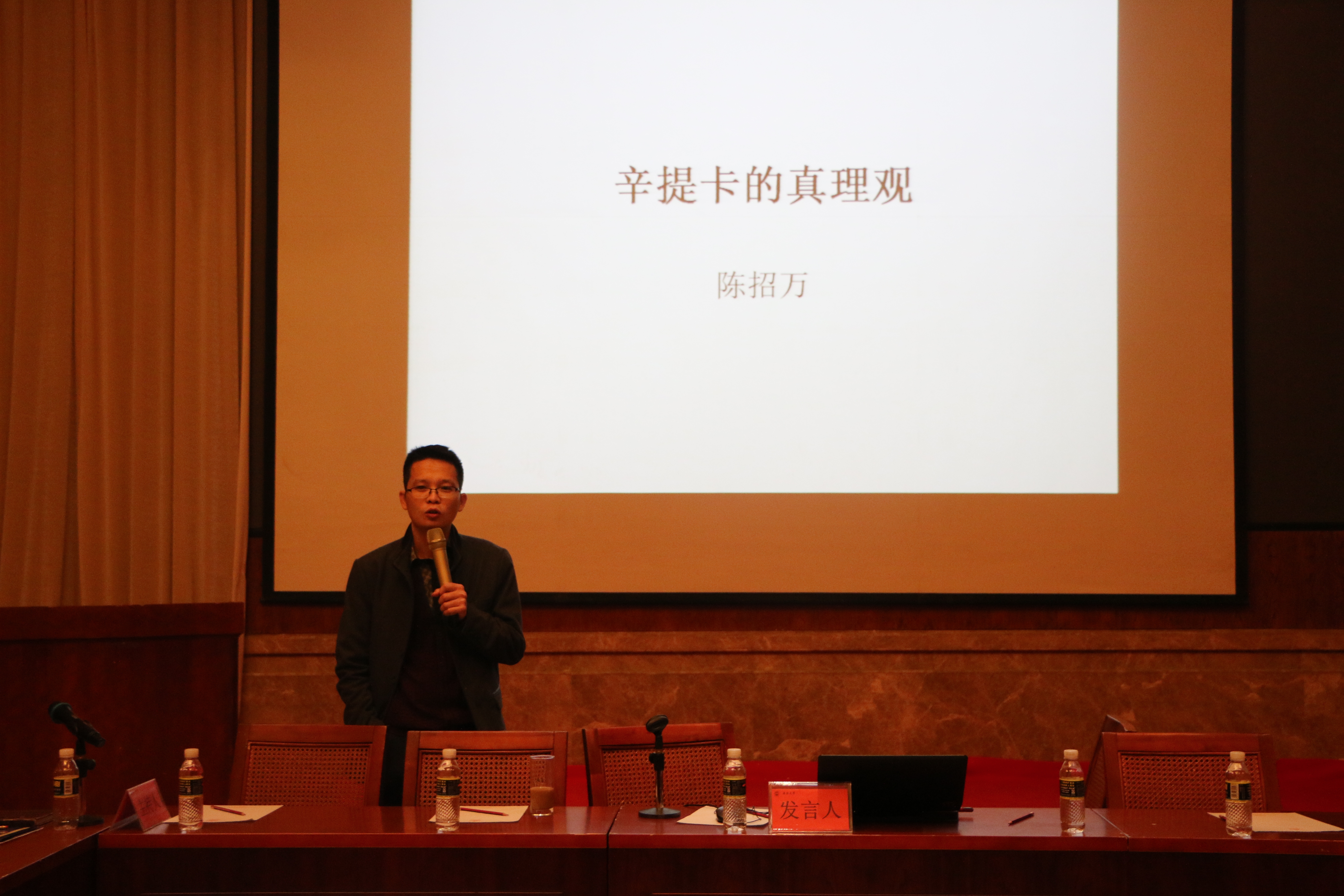 会议期间,厦门大学黄朝阳教授、河南大学过桥教授等16名教授分别作了题为“传统文化研究中的一个重要方法论问题——如何辨析类比之“譬”和比喻之“譬””、“孔子论名”等专题报告,并围绕报告进行深入交流和探讨。我院教师陈招万在会议上作“辛提卡的真理观”报告。