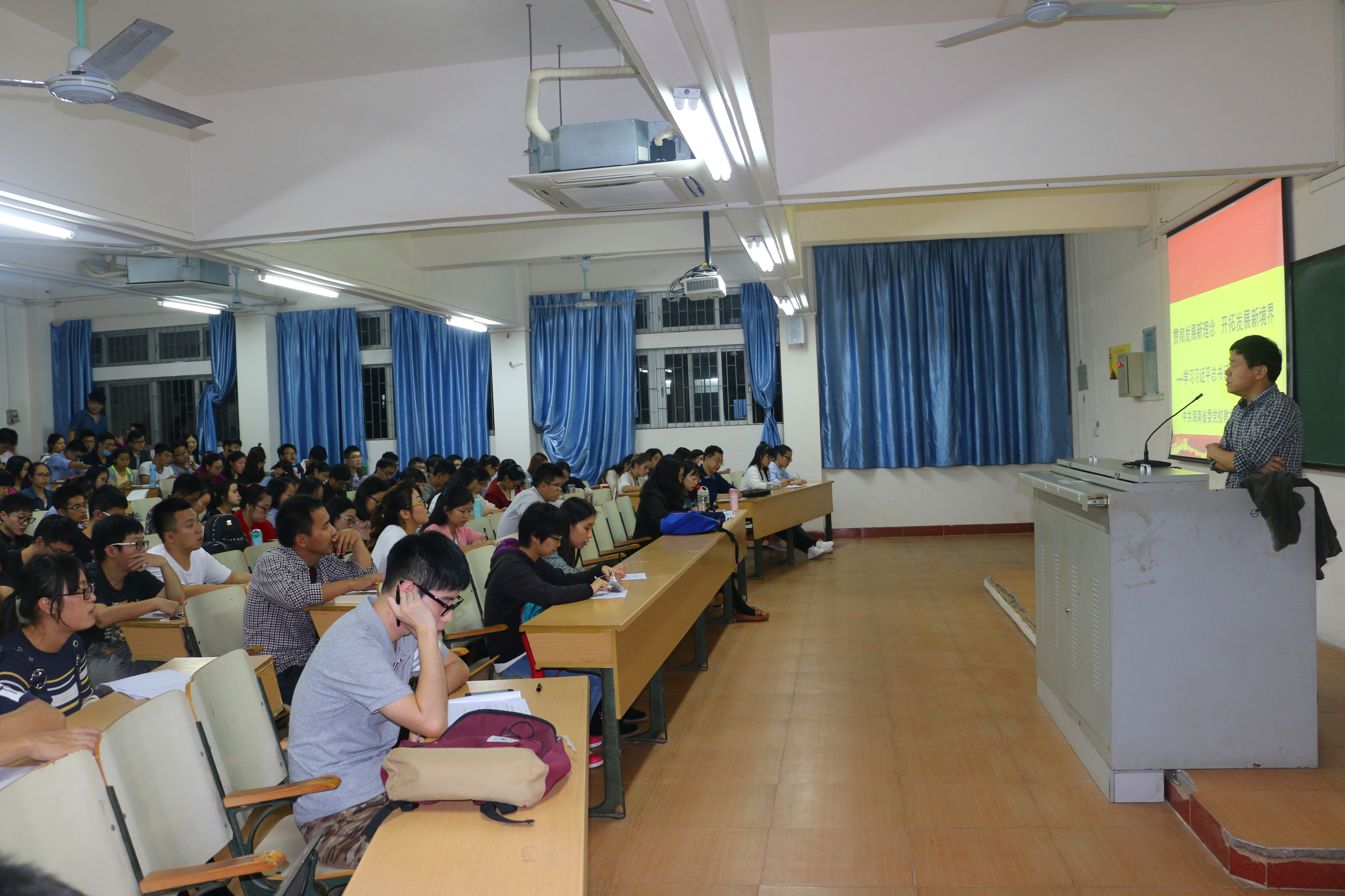 12月5-8日晚,海南省思想政治理论课特聘专家来校在2教109教室为我校研究生讲授《中国特色社会主义理论与实践课》。课堂由马克思主义学院院长李德芳主持,共计600余名研究生参加。