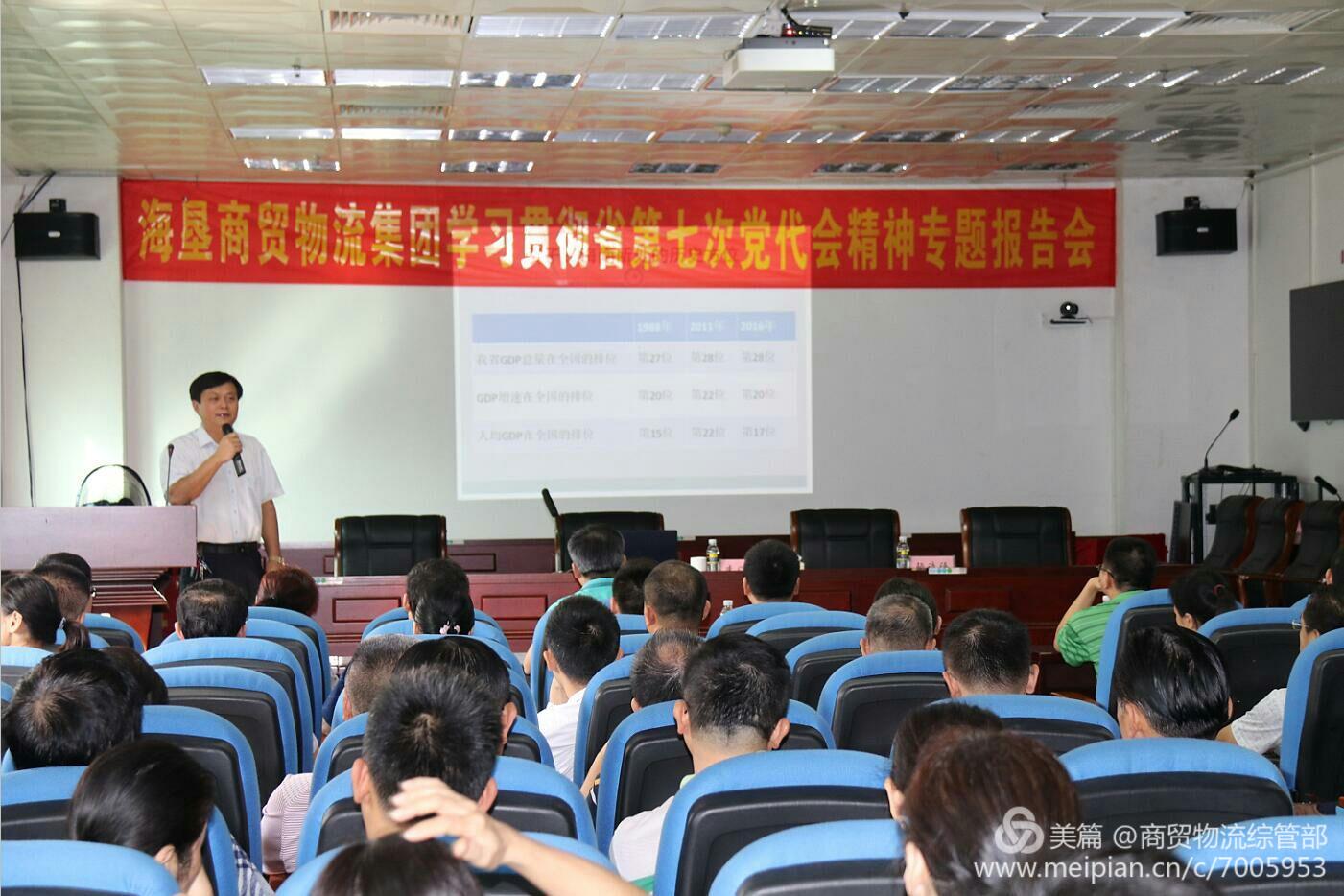 6月13日至14日,李辽宁教授分别应邀到省政务服务中心和海垦商贸物流集团作省第七次党代会精神专题报告会。他从《海南省第七次党代会工作报告》(简称《报告》)的起草过程、主要特点、主要内容及贯彻《报告》精神、建设美好新海南四个方面进行了分析讲解,着重学习了《报告》的主要特点和主要内容,提出了扩大宣传、形成共识,联系实际、狠抓落实,解放思想、勇于创新的重要举措。