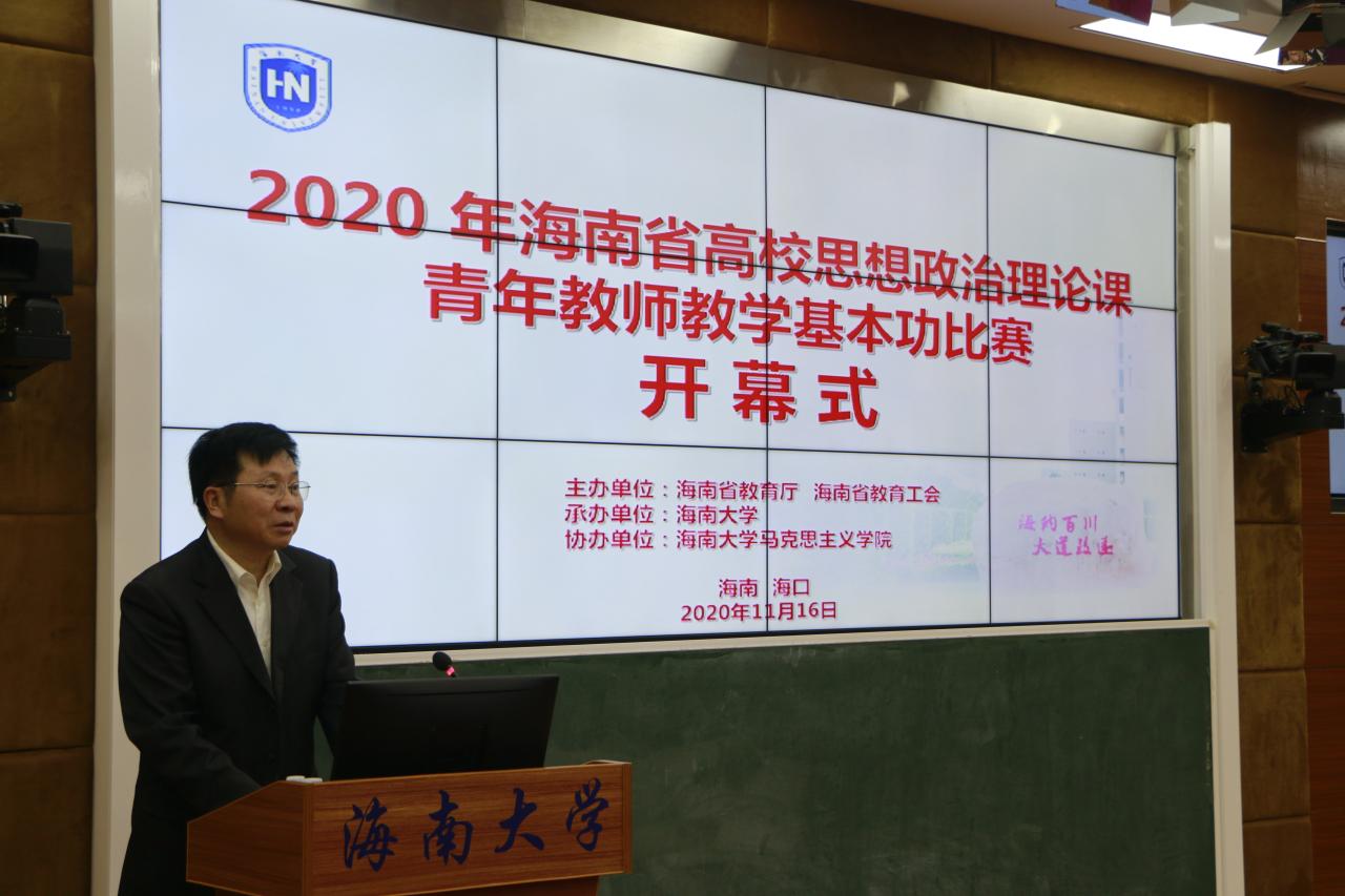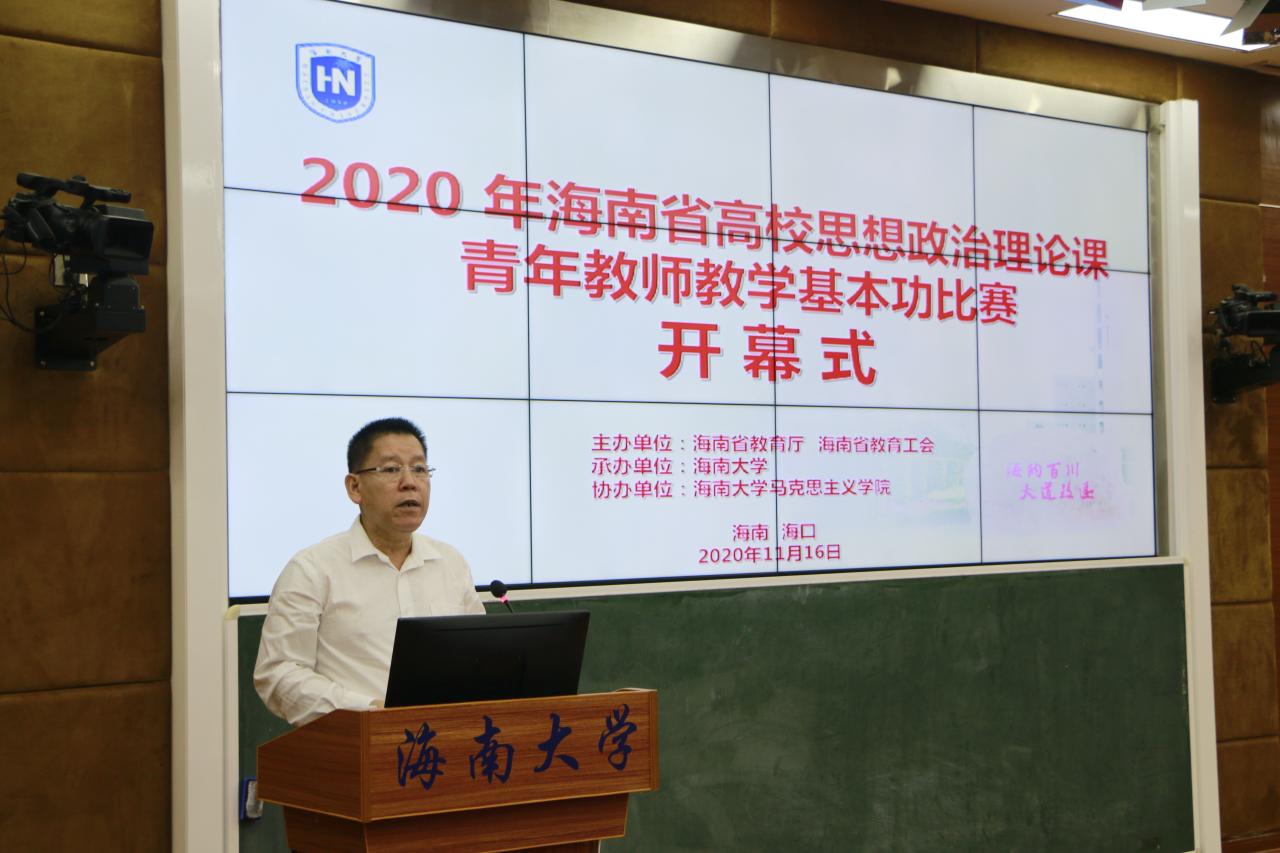 11月16-17日,由海南省教育厅、海南省教育工会主办,海南大学承办,永利集团88304官网协办的海南省高校思想政治理论课青年教师教学基本功比赛在海南大学举行。海南省教育厅二级巡视员范敏,海南省教育工会专职副主席方鸣,海南大学党委常委、副校长曹宪忠出席开幕式。来自全省各高校的43位选手参加比赛,100多名教师现场观摩。