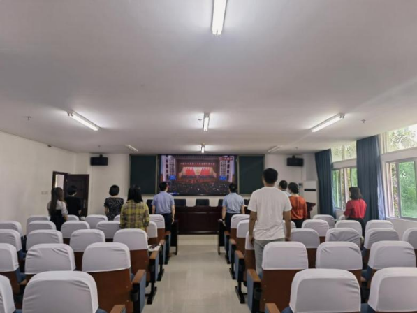 2022年10月16日上午10点,马克思主义学院领导班子成员、党支部书记及部分老师代表于社科楼C309会议室集中收看中国共产党第二十次全国代表大会开幕会。