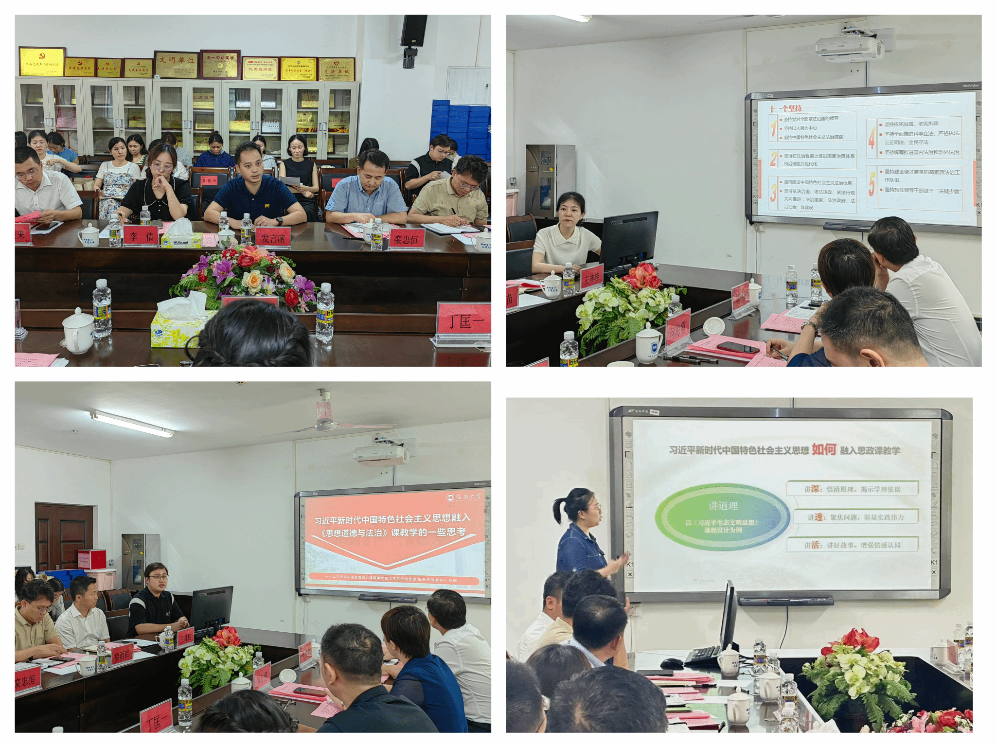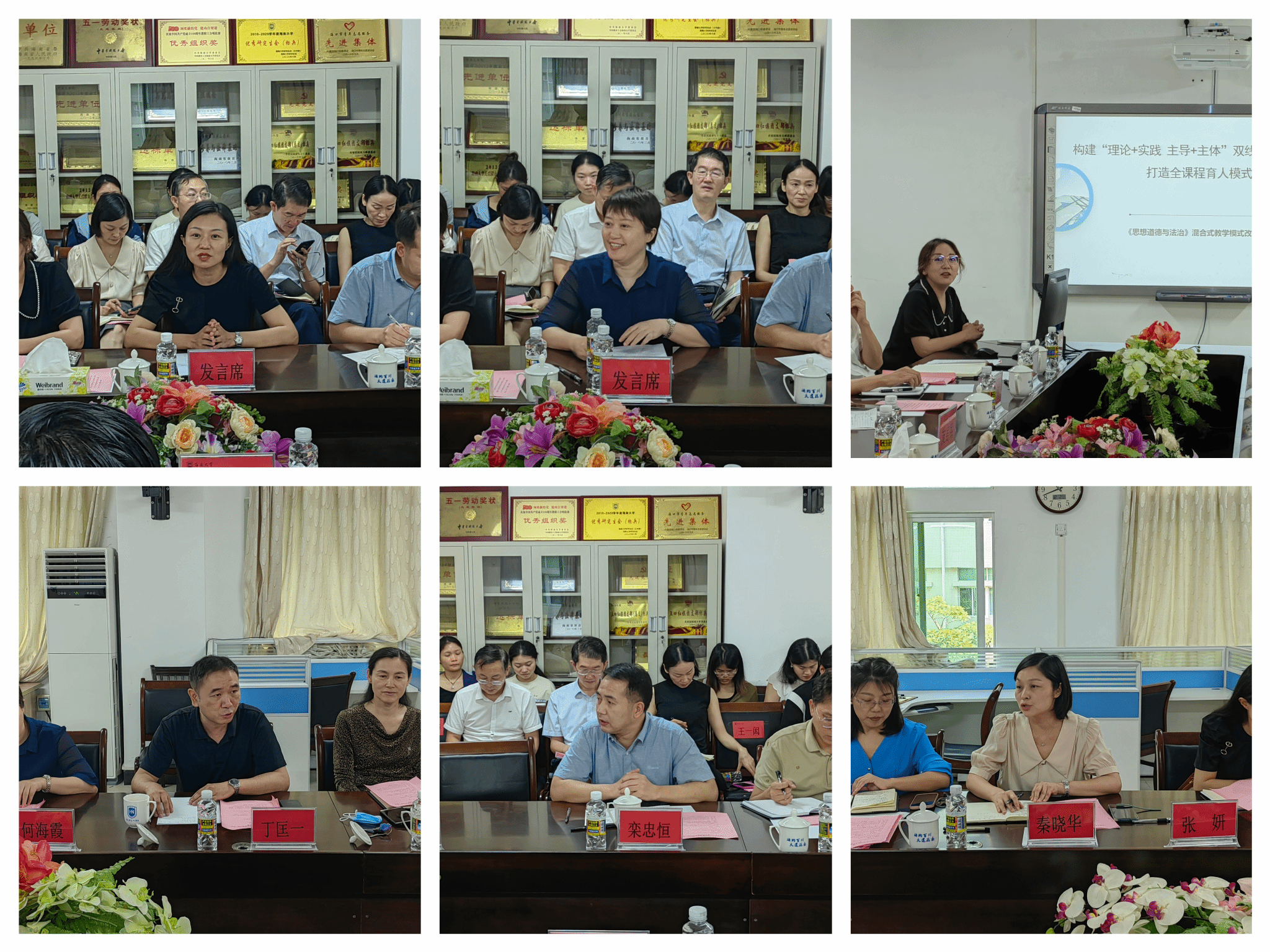 研讨会第三阶段。海南师范大学马克思主义学院张妍副院长、海口经济学院马克思主义学院何海霞副院长、琼台师范学院马克思主义学院教研室李倩主任,围绕“高校思想政治理论课改革”主题做主旨发言;永利集团88304官网青年教师王一闳、唐小然、林罗添骥、刘筱笛,围绕“习近平新时代中国特色社会主义思想融入思政课教学”做教学分享;海南大学椰风书院党委张井富书记、南海书院党委王林桂书记、乘风书院副处级辅导员张君成老师围绕“学院、书院协同育人”做经验交流。海南师范大学马克思主义学院丁匡一副院长、海南经贸职业学院马克思主义学院教研室栾忠恒主任、永利集团88304官网秦晓华副院长,永利集团88304官网教研室主任蒋玉、丁艳平、贺尧夫、刘涵,以及海南大学党委宣传部黎雨苗副部长、组织部徐望来副部长、马克思主义学院王善副院长、马克思主义学院教研室王一闳主任,分别就各研讨主题作评议研讨。