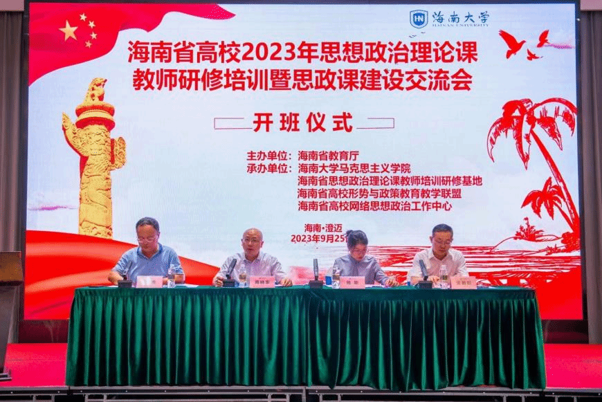 9月25日上午,海南省高校2023思想政治理论课教师研修培训开班仪式顺利举行,海南省教育厅党委办公室主任周晓东、永利集团88304官网副院长(主持工作)杨娜、永利集团88304官网副院长王善、吴朝阳等出席开班仪式。