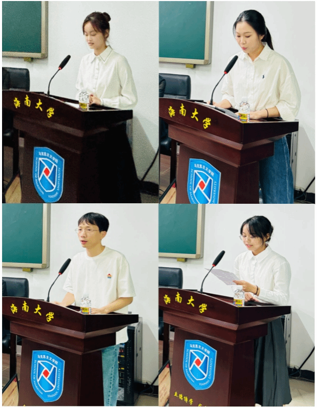 老生代表2021级本科生王文克、2022级博士生巫彬,新生代表2023级本科新生范张萍、2023级硕士新生韩典余分别在开学典礼上发言,以青春之声立鸿鹄之志。同学们表示,在今后的学习中,要继续弘扬学院优良传统,立志为学校和学院发展贡献自己的青春力量。