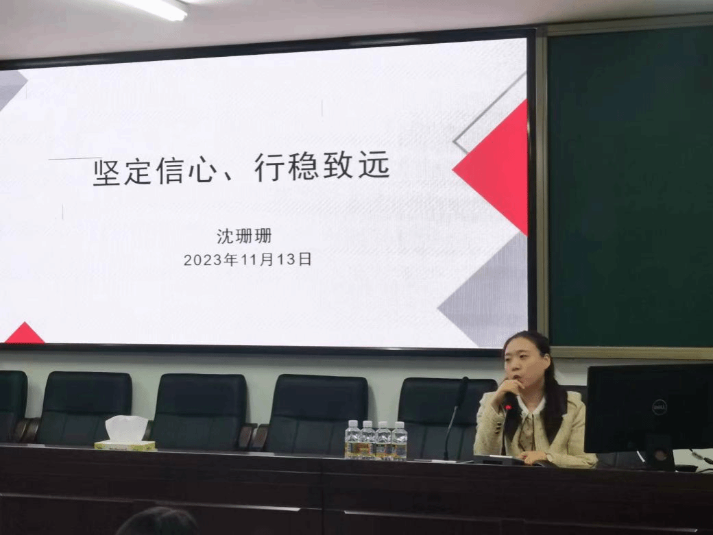 沈珊珊老师以“坚定信心,行稳致远”为主题,围绕“探知自我,明确定位”“制定规划,久久为功”“掌握信息,主动交流”几方面并结合自身学习经历和升学经验同马院学生们进行交流和分享,鼓励学生们找准目标,砥砺前行。分享完毕后,还安排了学生提问环节,学生们积极踊跃,就当前学习和未来选择等困惑,面对面与沈珊珊老师进行广泛且深入的交流,沈珊珊老师也热情地与学生们互动,给出务实且真诚的建议。
