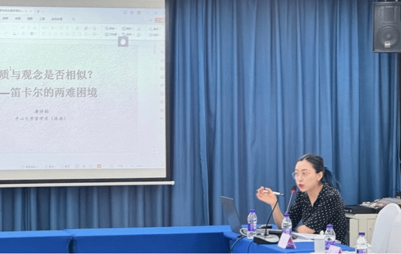 11月26日上午,笛卡尔哲学年会的第五场发言由山东艺术学院张洪涛教授主持,来自中山大学哲学系(珠海)的叶斌教授和唐诗韵博士依次发言。叶斌教授的论文题目为“笛卡尔论无限”,他认为笛卡尔的两种上帝观念最终会对清晰明确的标准以及以往关于笛卡尔表征主义的解释产生冲击。唐诗韵博士的论文题目为“物质与观念是否相似?——笛卡尔的两难困境”,她认为动力因本身的外在性特征帮助笛卡尔构建了更完整的形而上学,但是他又无法仅凭这个动力因证明物质存在,这便导致笛卡尔在固守动力因的同时造成了物质与观念既相似又不相似的矛盾表述。