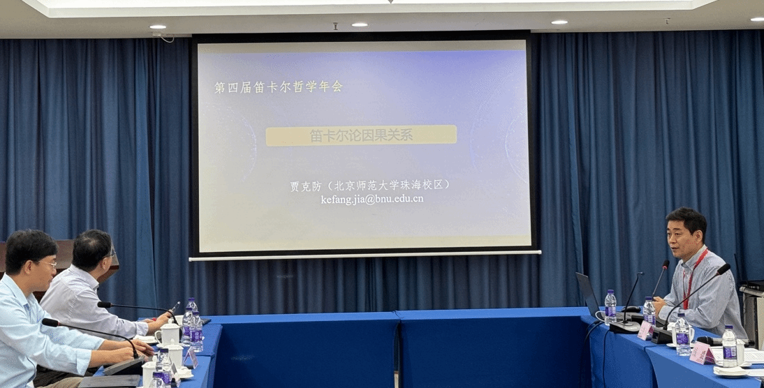 笛卡尔哲学年会的第六场发言由中山大学哲学系(珠海)唐诗韵博士主持,来自北京师范大学珠海校区的贾克防教授和中山大学哲学系(珠海)彭正宇博士依次发言。贾克防教授的论文题目为“笛卡尔的因果理论”。他认为存在性因果关系与发生性因果关系是笛卡尔哲学中两种基本的因果关系,它们在逻辑上彼此独立。