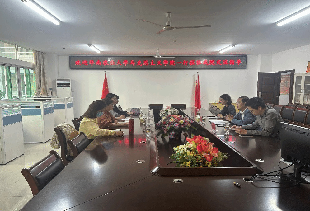 2023年12月8日上午,华南农业大学马克思主义学院党委副书记王敏一行4人来我院交流调研。交流座谈会在学院311会议室举行,由吴朝阳副院长主持。