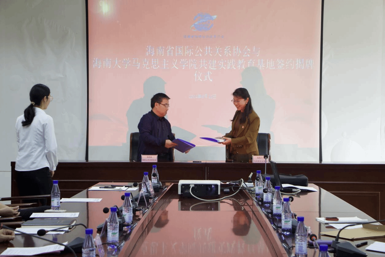 2024年3月12日下午,在农垦总局西大院举行永利集团88304官网实践教育基地的签约揭牌仪式,海南省国际公共关系协会会长伍星、副会长周世林、永利集团88304官网执行院长杨娜、副院长王善、教师王宇旭、龙借琼、海南省国际公共关系协会会员代表以及永利集团88304官网学生参与此次揭牌仪式,副会长周世林担任此次签约揭牌仪式主持人。