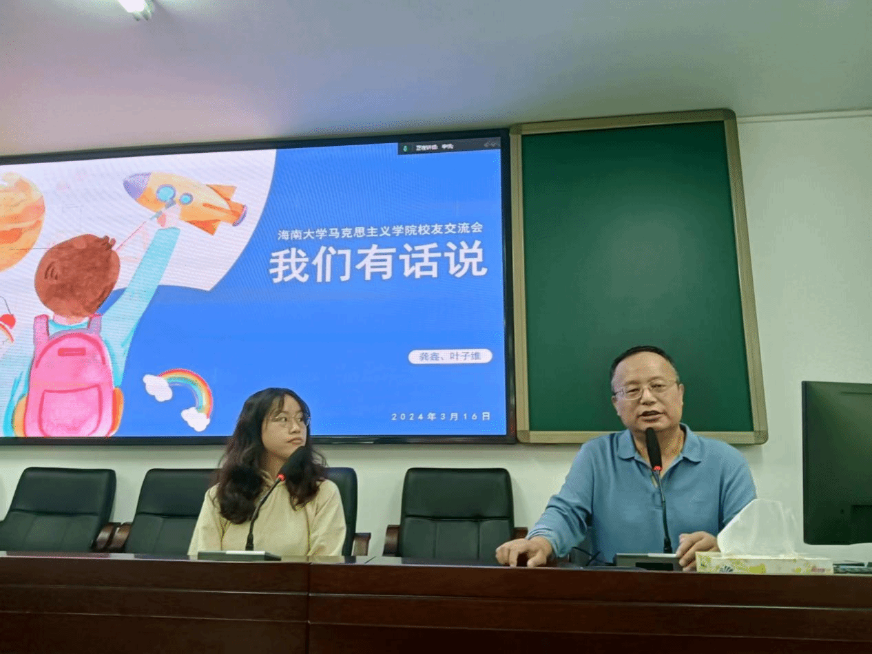 3月16日上午10点,海大马院第十期优秀校友论坛在社科楼A309举行。本次论坛邀请到海南大学2016级思政本科、武汉大学马克思主义学院硕士、厦门大学马克思主义学院博士龚鑫学姐,2016级思政本科、武汉大学马克思主义学院硕士、武汉大学马克思主义学院博士叶子维学长为大一、研一等学生作学习体会分享,活动由永利集团88304官网副院长王善主持。