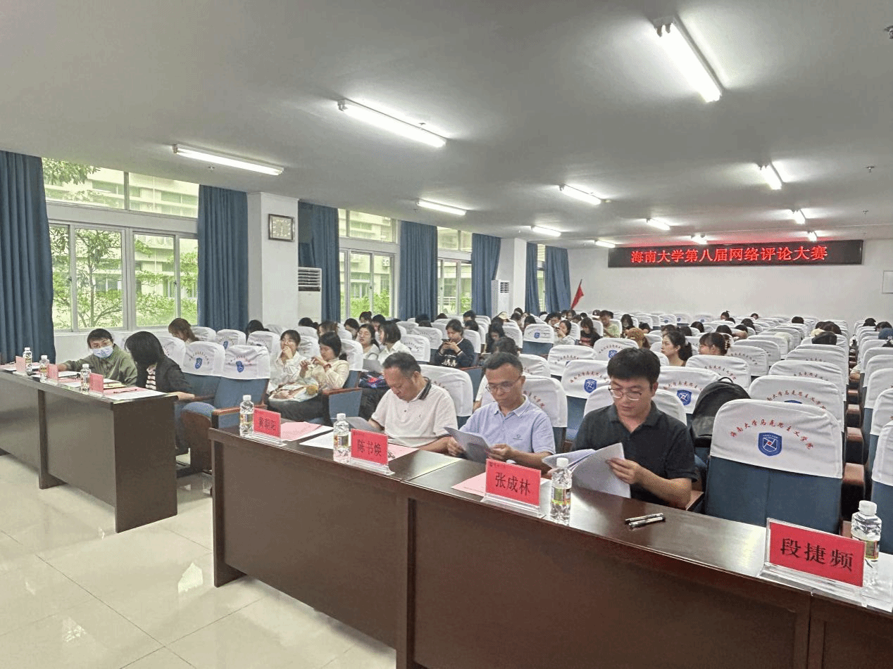 为深入学习宣传贯彻习近平新时代中国特色社会主义思想,培育新时代网络思想政治教育人才,在网络舆论中弘扬正能量,加强网络思想政治工作,海南大学第八届大学生网络评论大赛年度总决赛于4月9日下午在海南大学社科楼A-309举行。大赛由校党委宣传部主办,马克思主义学院和乘风书院联合承办。马克思主义学院党委书记段捷频、海南大学乘风书院党建会负责人黄苗苗,进入总决赛的选手和百余名大学生网络评论员参加活动。