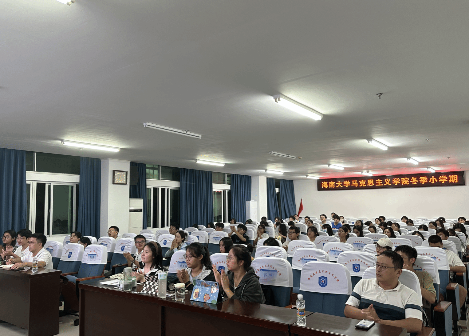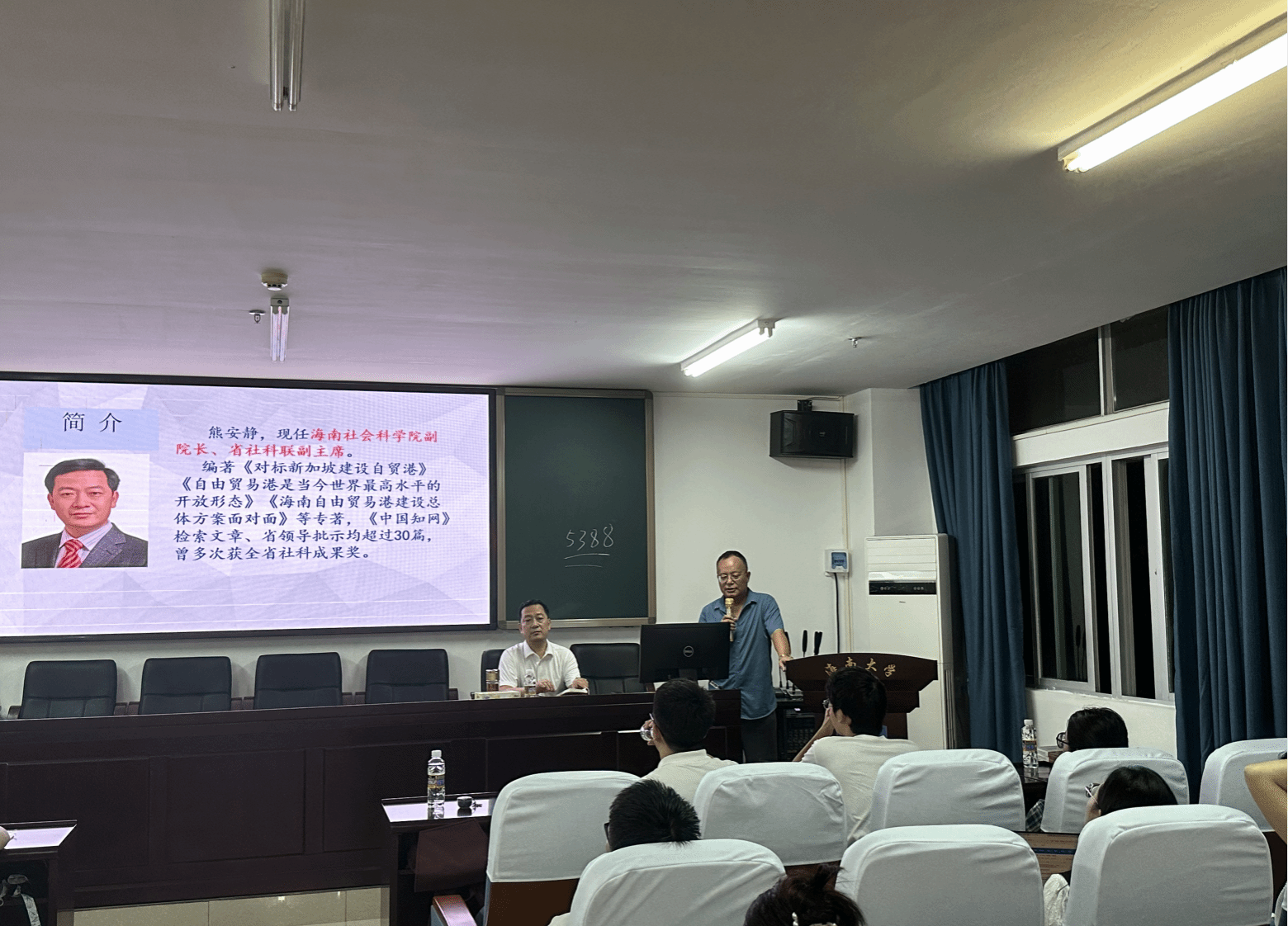 2023年10月23日,永利集团88304官网“冬季小学期系列课程”第五讲在社科楼A309会议室举⾏。海南社科联副主席熊安静以“海南自由贸易港试点政策进展与封关运作展望”为题,为马克思主义学院师生做了一场生动的报告。报告会由王善副院长主持,马克思主义学院本科生、研究生以及博士生聆听了此次学术报告。