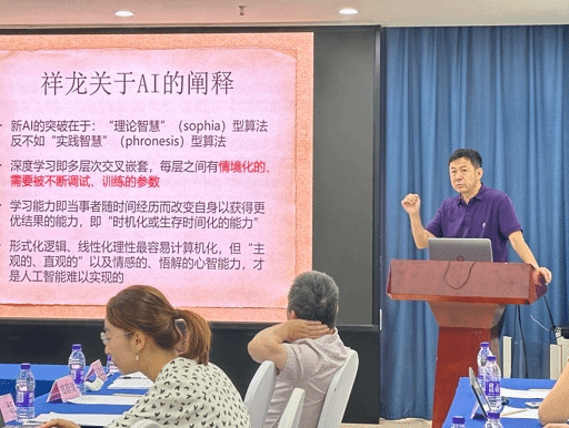 11月10日上午第一场发言由复旦大学的孙向晨教授主持。清华大学吴国盛教授以人工智能的哲学思考为题,就什么是人工智能以及人工智能的影响展开论述。北京大学的李猛教授探讨了自然关系在休谟经验主义和理性主义框架下的独特地位,提出观念的结合与传递能够揭示出人类理解世界秩序的深层逻辑。海南大学的程志敏教授表示张祥龙教授将西方思想融入儒家,与荀子的做法有异曲同工之处,结合孟荀之长,方能真正复兴儒学。上午第二场由中山大学的蔡祥元教授主持。浙江省社会科学院副研究员李旭博士表示张祥龙教授在当代思潮中提出了“儒家文化保护区”的设想,为现代社会提供了一种在体制和市场化的间隙中追求个体“桃花源”生活的方式。中国社科院的袁恬老师认为张祥龙教授通过对“兴”这一文学手法的独特解读,突显了其在诗歌抒情性中的核心地位,并将其作为中西诗学差异的关键特质,展现了深刻的诗学洞见。永利集团88304官网的黄启祥教授认为贺麟与张祥龙教授在各自的哲学研究中深入阐发了王阳明的知行合一学说,贺麟提出知行合一新论,为学说提供现代解释,而张祥龙教授则借助现象学视野进一步发展其思想,展现了当代思想史上的连续创新。